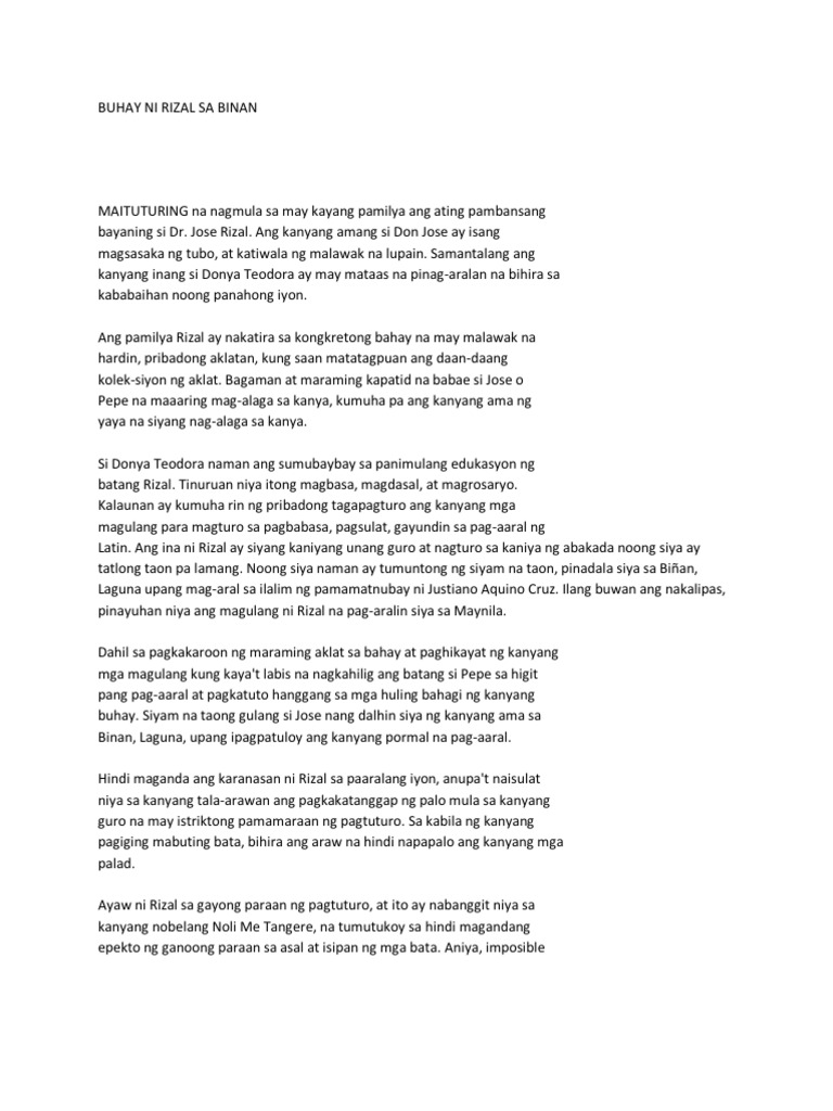 ADVENT OF A NATIONAL HERO Jose Rizal born on June 19 It was Franciso Mercado Rizal was born on May 11 in Binan Laguna. Scribd es red social de lectura y publicación más importante del mundo. Results for pluma ni rizal reaction paper translation from English to Tagalog.