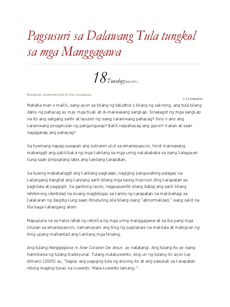 Pagsusuri Sa Dalawang Tula Tungkol Sa Mga