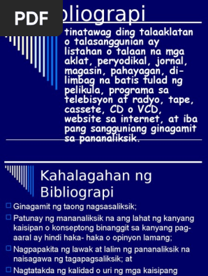 Bibliograpi 110625082002 Phpapp02 1 Pdf Bib Liograp I Tinatawag Ding Talaaklatan O Talasanggunian Ay Listahan O Talaan Na Mga Aklat Peryodikal Jornal Course Hero