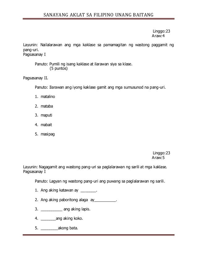 SANAYANG AKLAT SA FILIPINO UNANG BAITANG 3. Komprehensibong Sanayang-Aklat sa Filipino para sa Senior High School. You may print these worksheets for your children or students but please do not do so for profit.