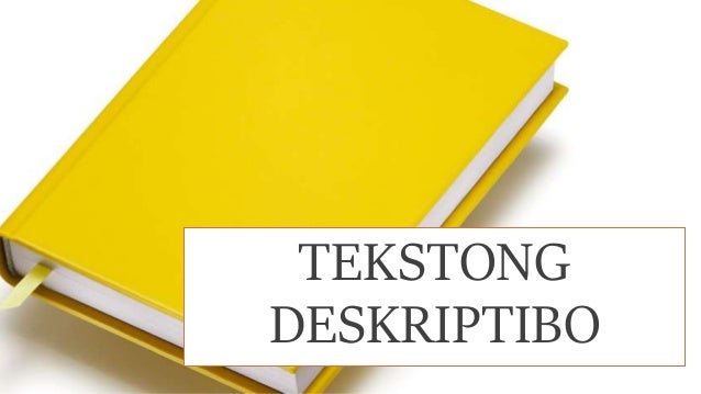 Tekstong deskriptiv about aklat. Ano ang layunin ng tekstong persuweysib. Natutukoy ang tono ng teksto at saklaw ng paglalarawan nito. Ang tekstong deskriptibo ay uri ng paglalahad at ginagawa sa gamit ang mahusay na eksposisyon.