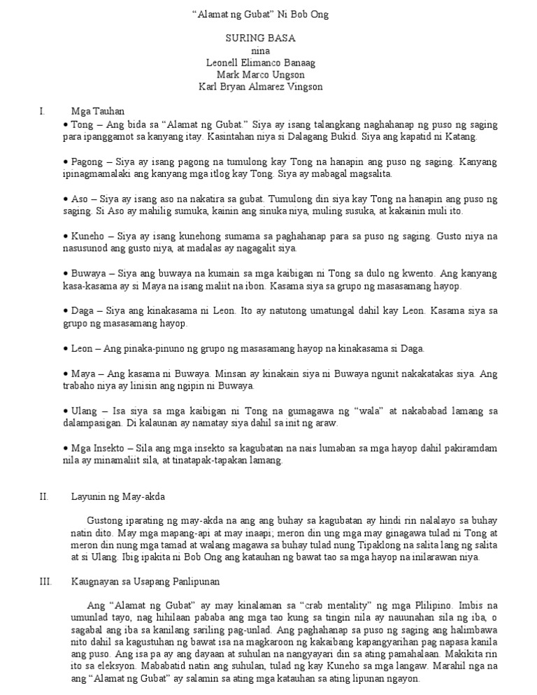 Alamat ng Gubat Legend of the Forest is the fourth book published in 2003 by Bob Ong a Filipino contemporary author noted for using conversational Filipino to create humorous and reflective depictions of life as a Filipino. Give me food and I will live give me water and I will die what. Mga Tauhan Tong Ang bida sa Alamat ng Gubat Siya ay isang talangkang naghahanap ng puso ng saging para ipanggamot sa kanyang itay.